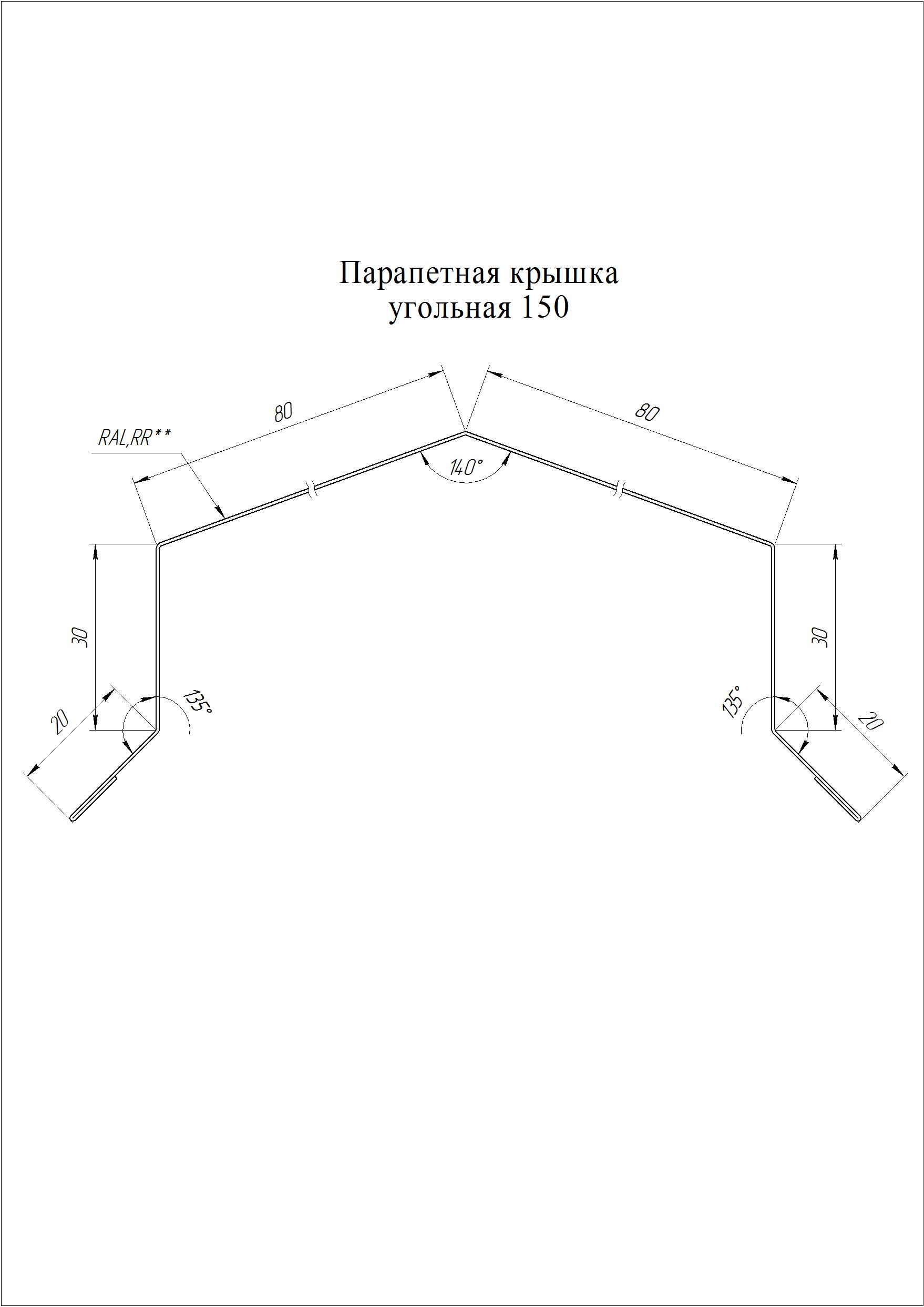 Парапетная крышка угольная 390 мм