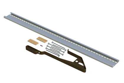 Механическое крепление стального профиля с крюком безопасности к двум стропилам при помощи 8-ми шурупов.