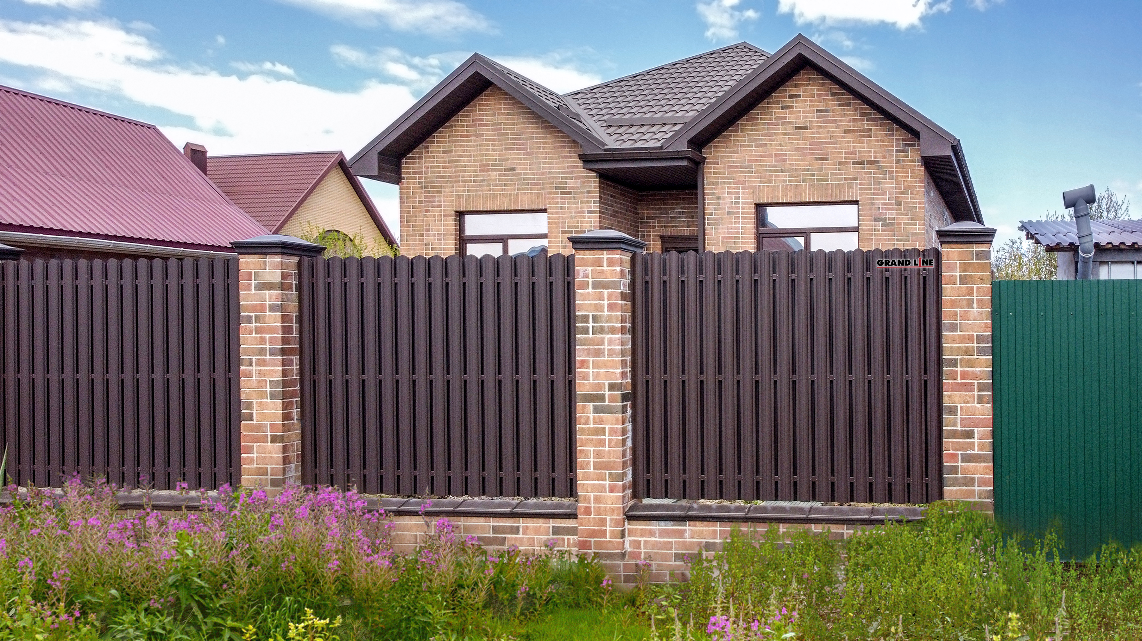 Темно-коричневый оттенок добавит элегантности и стиля вашему дому, придавая ему уникальный вид. Металлочерепица Grand Line легкая в установке, прочная и долговечная, что делает ее отличным выбором для любого типа кровли.