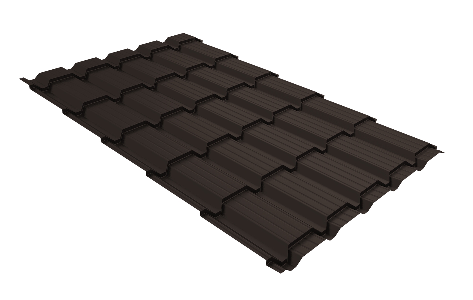 Темно-коричневый цвет этой металлочерепицы прекрасно впишется в любой архитектурный стиль здания, придавая ему элегантность и изысканность. Благодаря матовой отделке Satin Matt TX RR 32, поверхность кровли выглядит роскошно и оригинально.