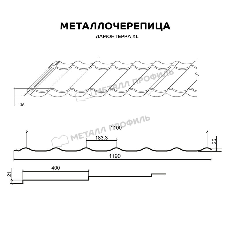 Металлочерепица Металл-Профиль Ламонтерра XL 0,45 VikingMP® RAL 9005 Черный темный