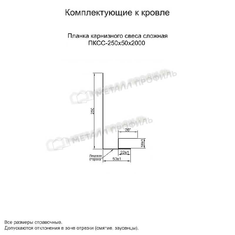 • Планка карнизного свеса сложная 250х50х2000 (PURMAN-20-3005-0.5) противостоит ржавчине.