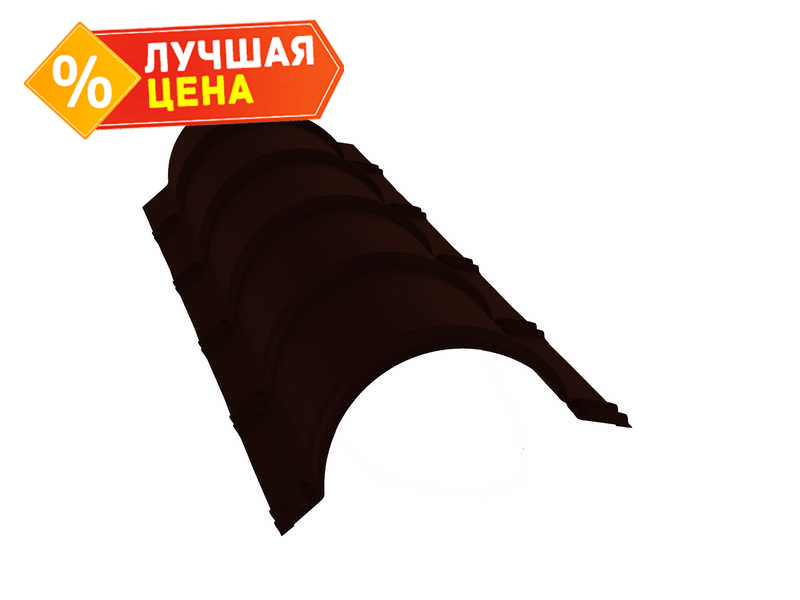 Планка конька полукруглого 0,5 GreenCoat Pural BT с пленкой RR 32 темно-коричневый (RAL 8019 серо-коричневый)