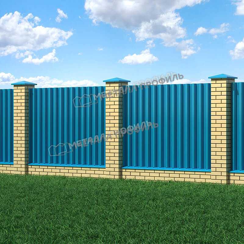 Покрытие профлиста выполнено из полиэстера в цвете RAL 5015 Синее небо, что придает ему эстетичный внешний вид и защищает от коррозии. Этот цвет идеально подходит для создания яркой и привлекательной крыши или фасада здания.