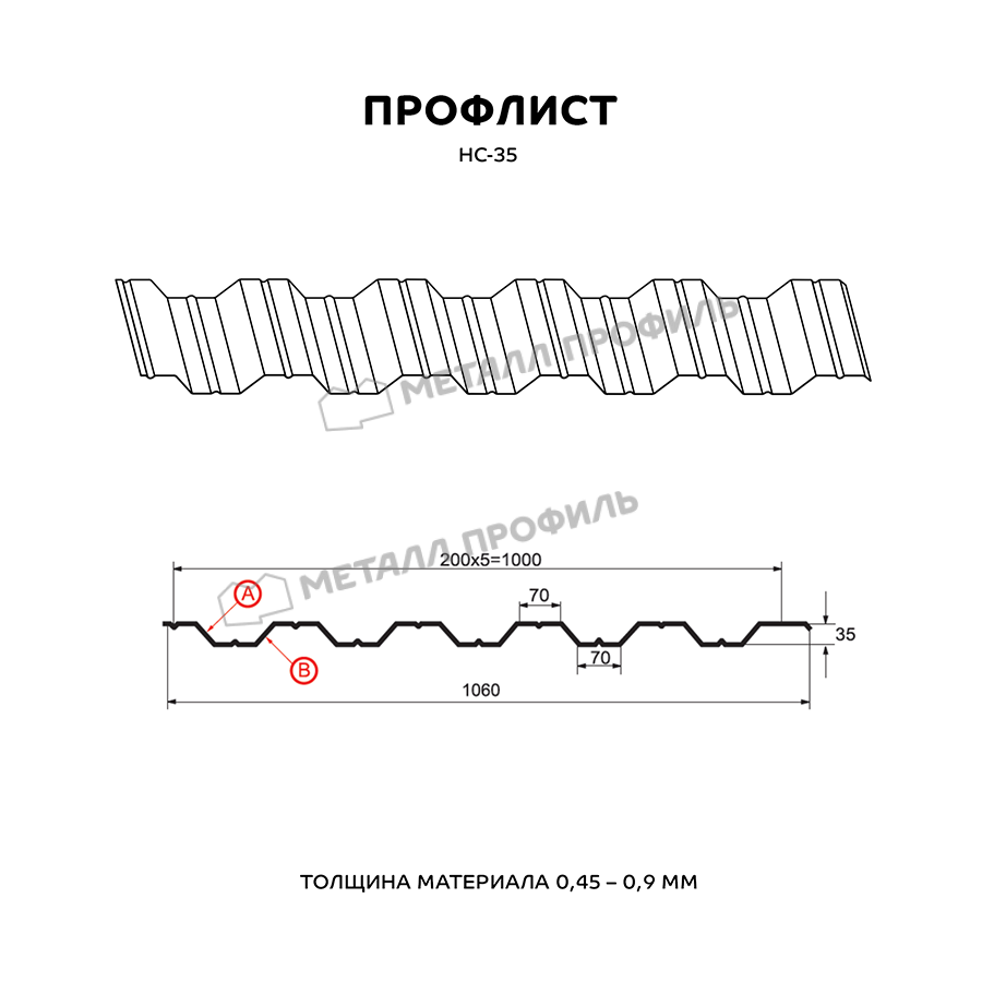 Профиль НС-35 имеет толщину 0,45 мм, что обеспечивает прочность и долговечность конструкции.