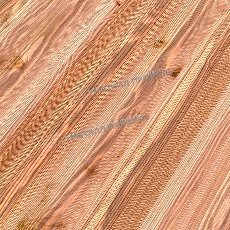 Текстурированная поверхность профлиста имитирует натуральный кедр, придавая зданию элегантный и стильный вид.