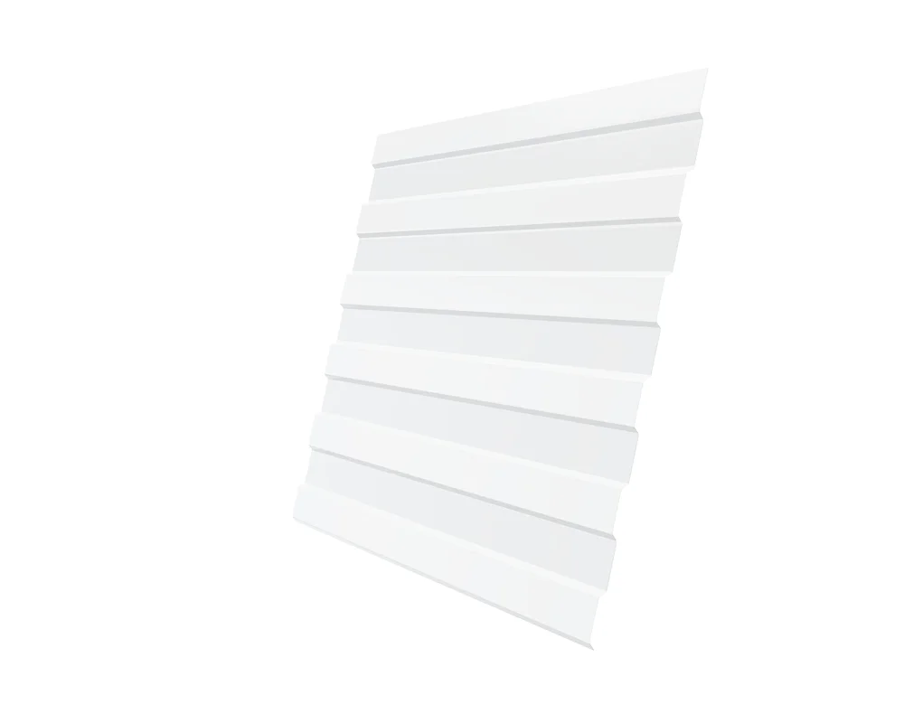 Профнастил ЮджинСтрой С8 с покрытием из полиэстера толщиной 0,5 мм в цвете Ral 9003 сигнально-белый - отличный выбор для кровли и обшивки зданий. Этот материал обладает высокой прочностью, устойчивостью к коррозии и влаге, а также легкостью монтажа.