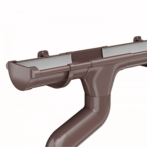 В состав системы входят все необходимые доборные элементы для организации полноценного отведения дождевой и талой воды с крыш и навесов.